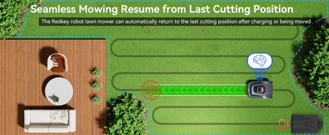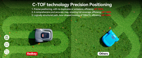 Precise Positioning: The Redkey Robot Lawn Mower uses advanced C-TOF patented technology for precise positioning and intelligent path planning (parallel, vertical, or both) to fully cover the lawn. After charging or moving, the mower resumes its previous path to avoid multiple cuts and gaps. It's three times more efficient than traditional mowers! Through the app, you can view the trajectory map in real-time, offering the highest level of comfort and immersion.
