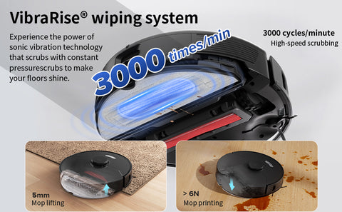 【Improved Cleaning Performance】The S7 MAX super floor sweeping robot with suction station has 5500Pa suction and ultrasonic mopping system, 3000 times/min, ultrasonic vibration, constant pressure, effectively dissolving stubborn stains, raising the mop by 5mm to prevent secondary pollution.