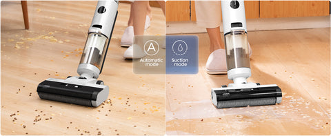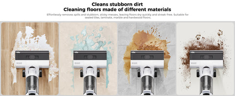 Three-in-one floor cleaner: Vacuum, mop, and dry in one step.